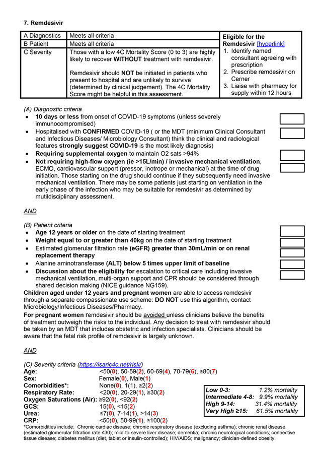 Anti-COVID therapy is a fast and dynamic changing landscape, consideration should be given to clinical suitability and eligibility to newer classes of drugs.Last updated: December 2020.